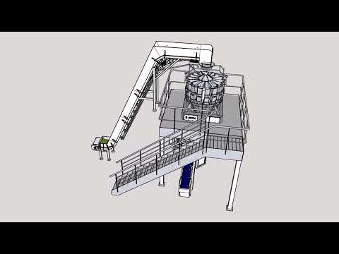 Ishida manufactures leafy greens (think lettuce!) weighing and packaging equipment capable of handling huge amounts of throughput, ideal for indoor farming facilities. I modeled this simply using the engineering spec sheets provided by Ishida.